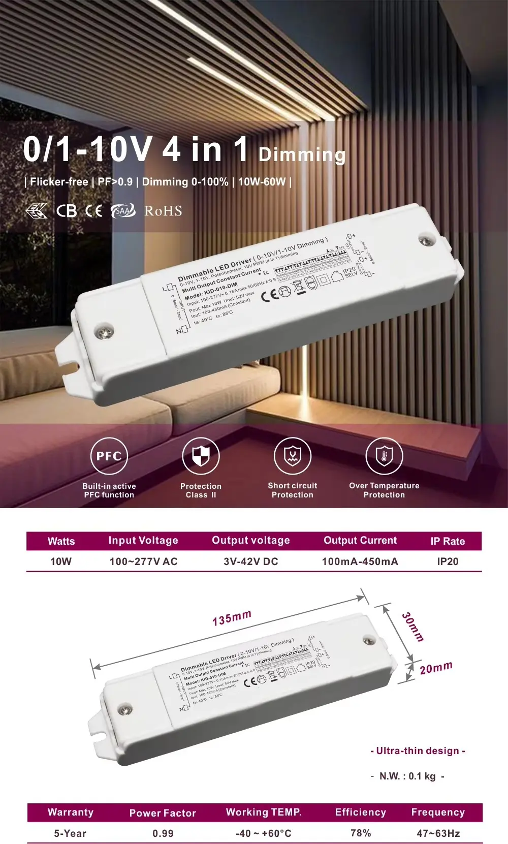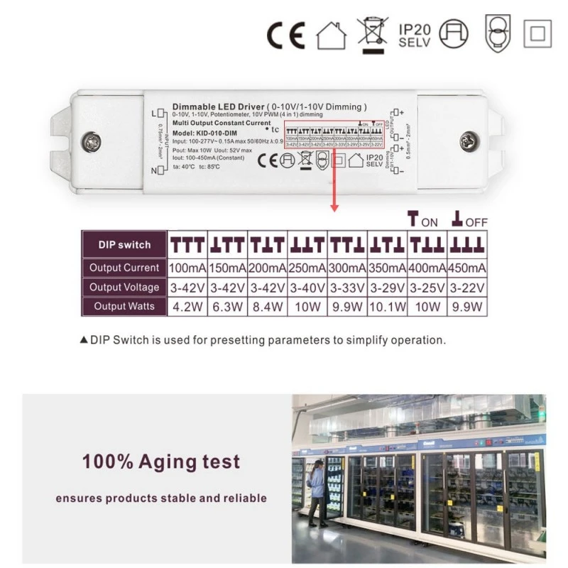 Starwell 정전류 0-10V 디밍 가능 Led 드라이버 사양: