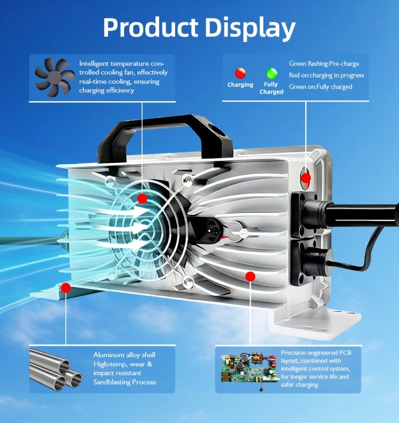 전기 자동차, 지게차, 골프 카트 및 해양 시스템에 적합한 이 STARWELL 온보드 충전기는 다용성, 속도 및 안전성을 결합하여 이동 중 배터리 요구 사항에 맞는 신뢰할 수 있는 전원 솔루션입니다.
