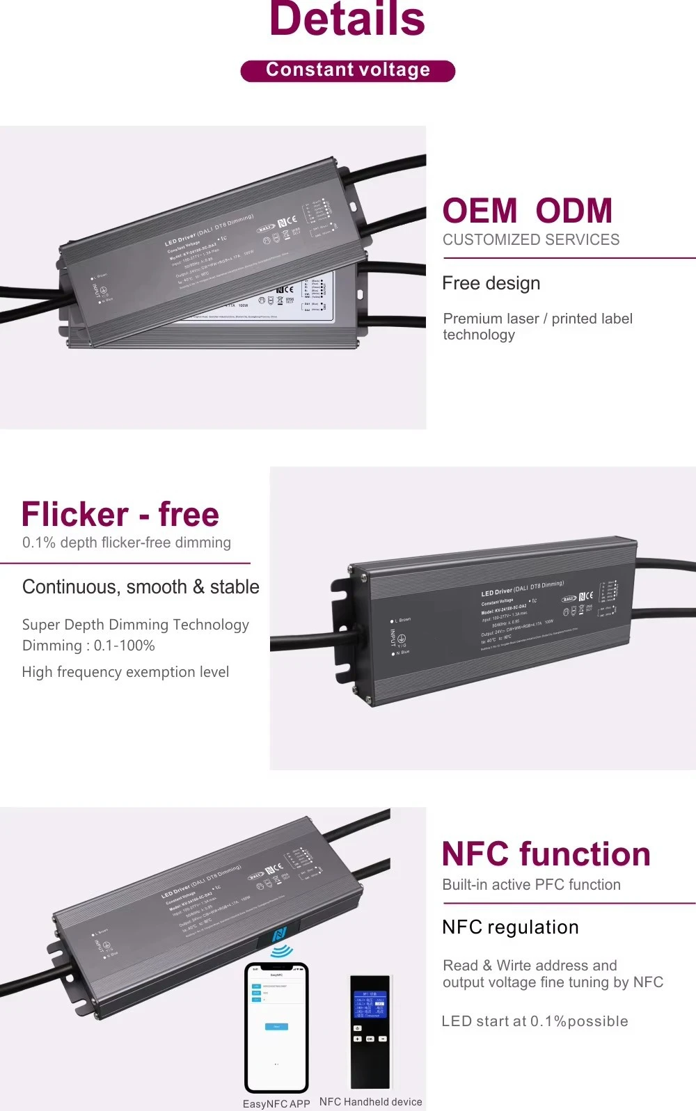 Starwell DALI 정전압 DT8 디밍 가능 Led 드라이버 사양: