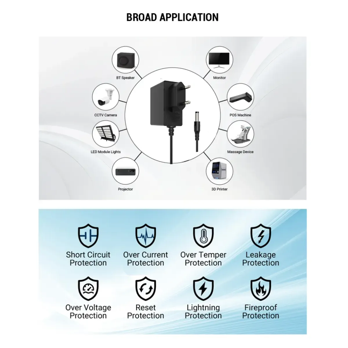 1. 포괄적인 안전 보증: 과전류, 과전압, 단락 및 과열 보호를 포함한 다양한 보호 기능을 갖춘 이 어댑터는 전기 결함으로부터 어댑터 자체와 연결된 장비를 모두 보호합니다.