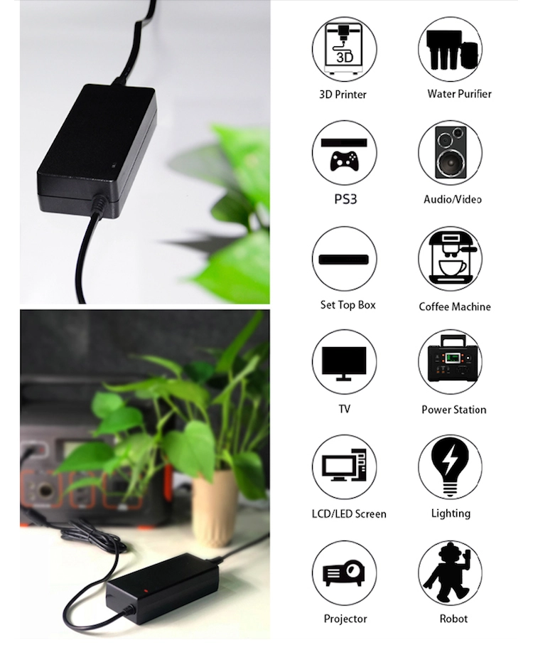 * 120W 시리즈용 추가 장치: 12V/15V/20V/24V/36V/48V 사용 가능 * 안전 : OCP/OVP/OTP, SCP, 자동 과부하 차단, 과전압 차단, 자동 열 차단. * 다양한 호환성: LED 스트립 조명, 3D 프린터, 햄 라디오 트랜시버, CCTV 카메라, 차량용 서브우퍼 앰프, 오디오 앰프, 무선 라우터, ADSL Cats, 가습기, HUB, 키보드, BT 스피커, 모니터, 웹캠, DVR, NVR, 오디오/비디오 전원 공급 장치
