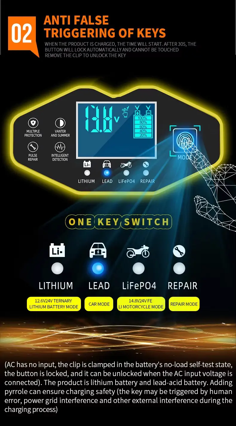 배터리 유형: 칼슘, 젤 AGM.습식, 리튬을 포함한 대부분의 납축 배터리 유형. 납산. LifePo4 등..-