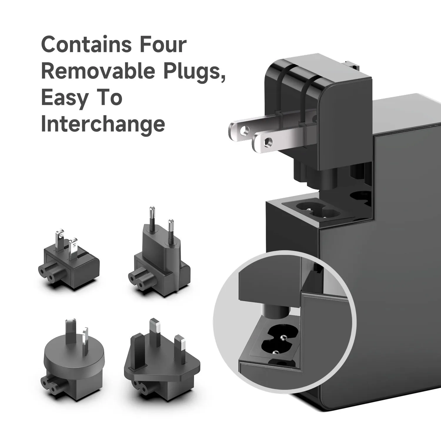 다중 표준 플러그: STARWELL 전원 어댑터에는 4가지 유형의 스냅인 플러그(미국, EU, 영국 및 AU)가 장착되어 있어 국경 간 여행을 위한 추가 변환기가 필요하지 않습니다.