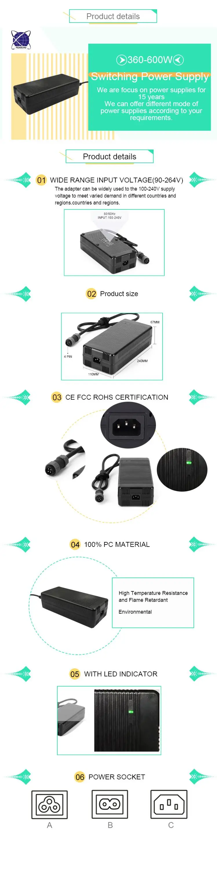 우리를 선택하시면 강력하고 안전 인증을 받았으며 다용도가 뛰어난 전문 전원 공급 장치를 선택하실 수 있습니다. 이 12V 50A 600W 스위칭 전원 공급 장치 어댑터를 중요한 장비에 대한 가장 안정적인 전원 지원으로 만들고 프로젝트의 안정적인 작동을 보장하십시오.