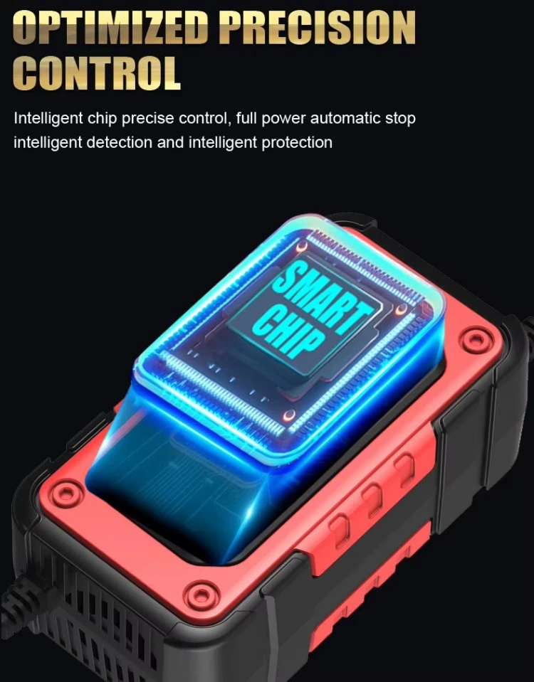 완전 지능형 충전: 마이크로프로세서로 제어되는 다단계 충전(세류, 정전류, 정전압, 부동 및 펄스)을 통해 과충전 없이 안전하고 효율적인 충전을 보장합니다.