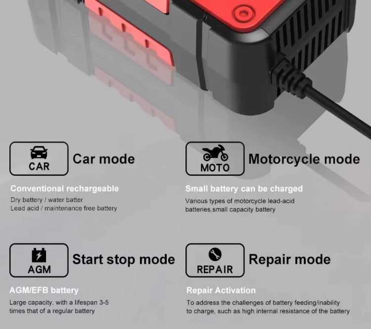 수리 모드: 내장된 펄스 수리 기능은 황산염 배터리를 복구하고 배터리 수명을 연장하는 데 도움이 됩니다.