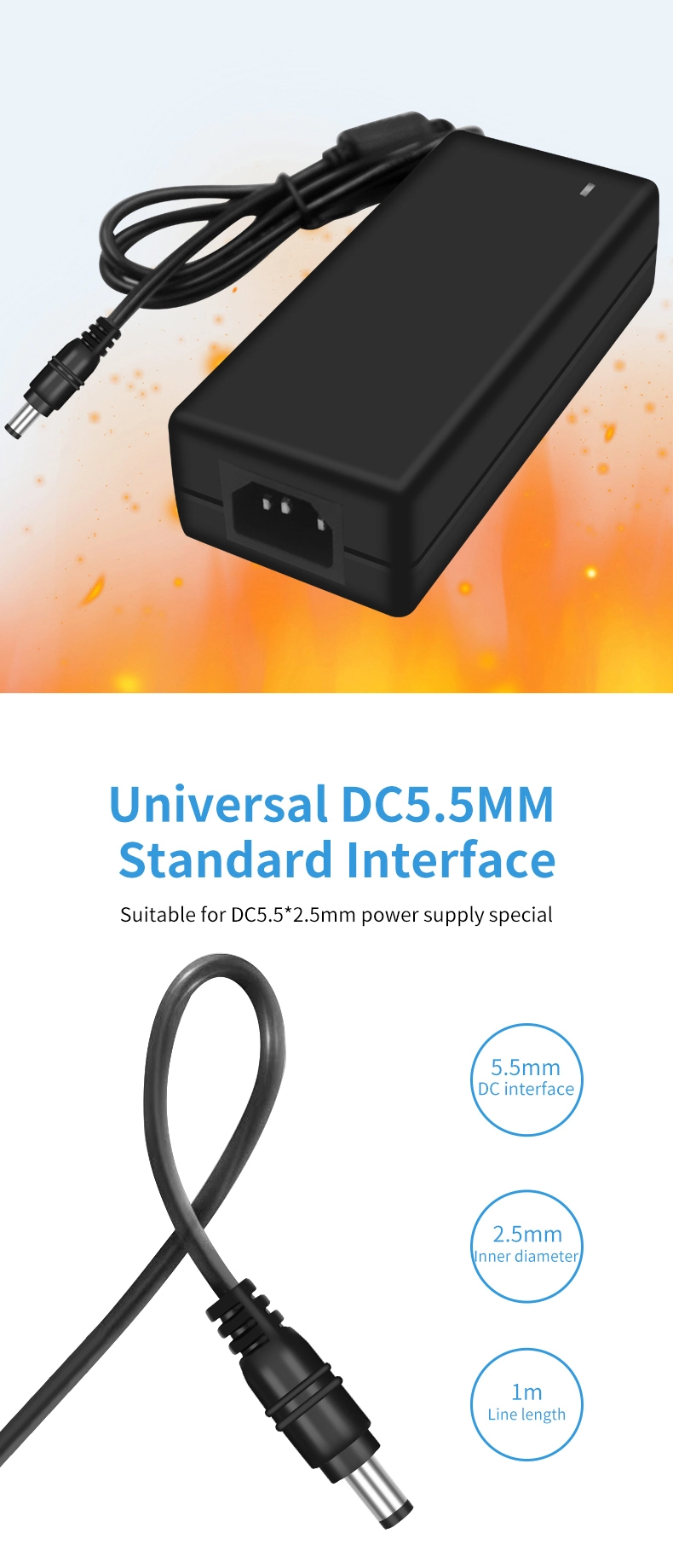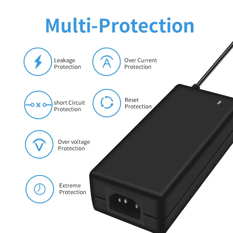 AC 100-240V의 넓은 전압 입력은 전 세계 100개 이상의 국가의 전력망과 호환됩니다. 180° 회전 가능한 DC 커넥터와 쌍을 이루는 1.5m 확장 출력 케이블(직경 1.0mm²)은 다양한 설치 시나리오에 적합합니다. 120×60×30mm의 컴팩트한 크기로 동일한 전력의 기존 어댑터보다 35% 더 작고, 무게도 280g에 불과해 휴대성이 50% 향상되었습니다.