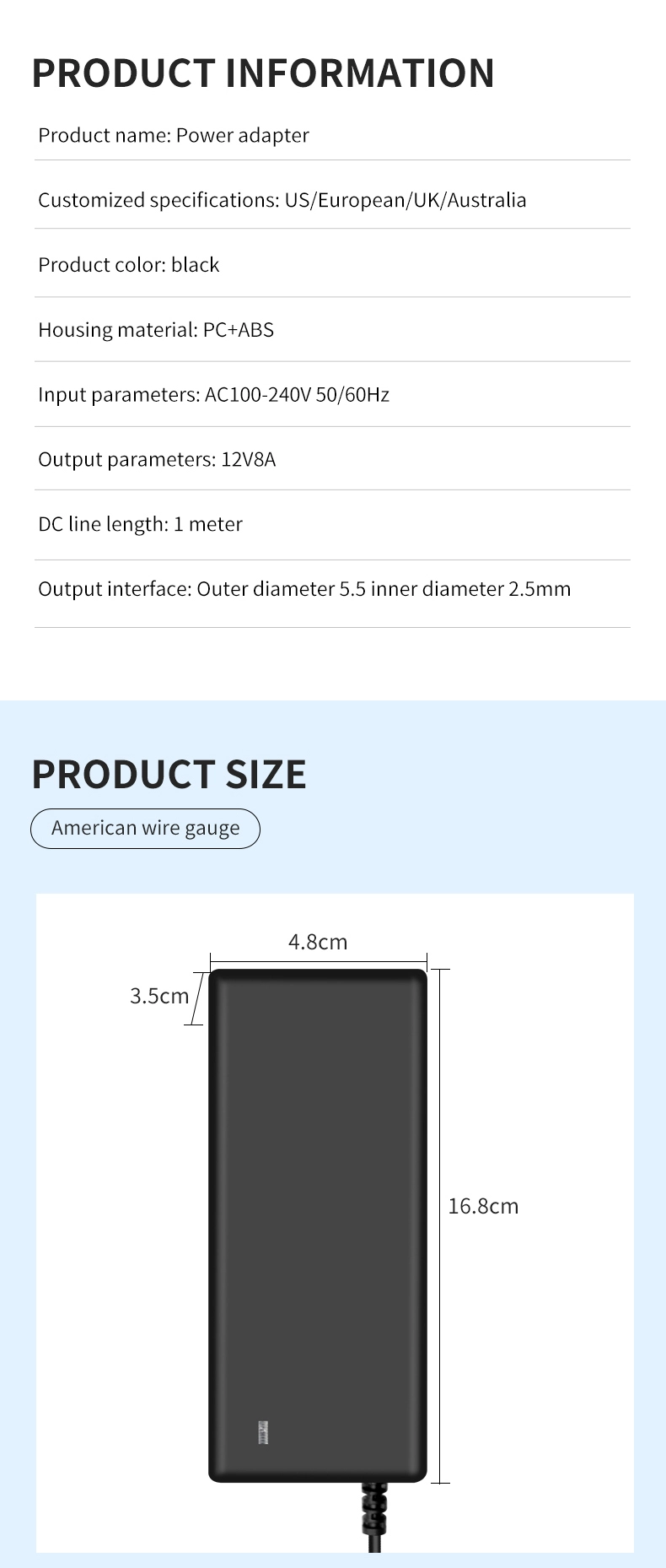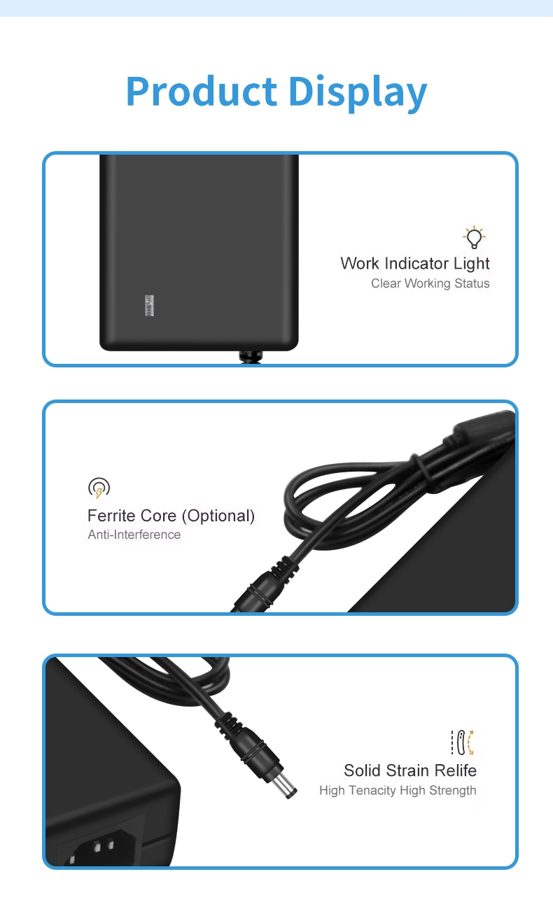 STARWELL 12V 8A 96W 데스크탑 전원 어댑터는 고전력 전자 장치용으로 설계된 고효율 전원 공급 장치 솔루션입니다. 12V ± 5%의 정확한 출력과 95%의 변환 효율을 갖춘 이 제품은 산업 장비, 의료 기기, 보안 시스템, 데스크톱 수준 전자 단말기 및 기타 시나리오에 이상적인 전원 공급 장치 파트너가 됩니다. 넓은 전압 입력 설계(AC 100-240V 50/60Hz)를 특징으로 하며 글로벌 전력망 표준과 호환되므로 추가 변환기가 필요하지 않습니다.