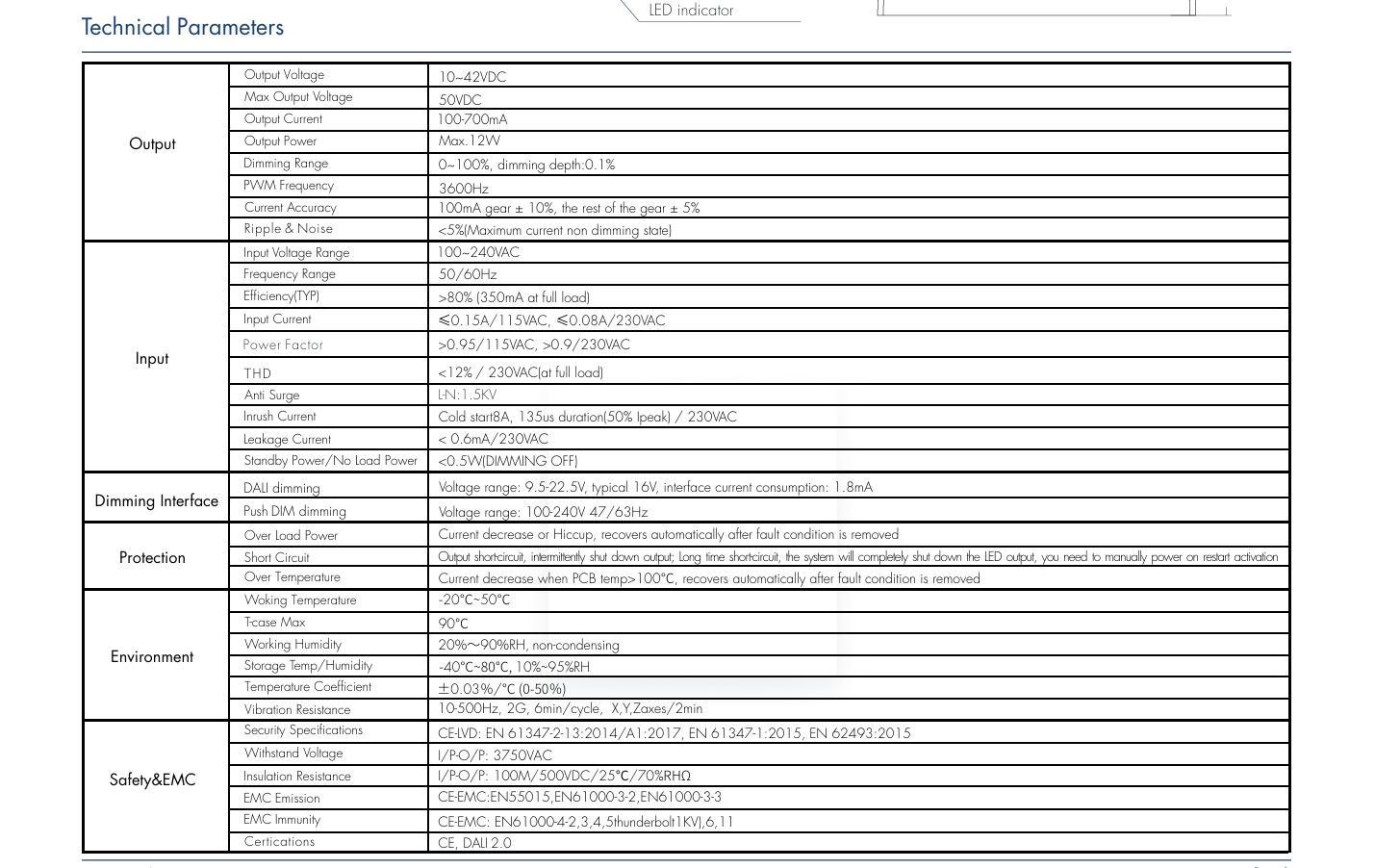 뛰어난 에너지 효율성: STARWELL DALI 조광 가능 LED 드라이버가 최대 부하에서 작동할 때 최대 부하에서 PF>0.95, 최대 효율 87%, 누설 전류 0.24mA 이하이며 ErP 표준을 준수합니다.
