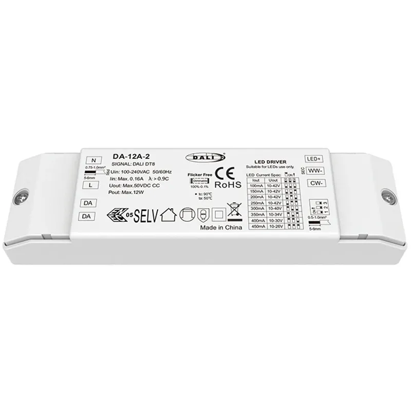 STARWELL 공장의 고품질 12W DALI CW WW CCT 조광 가능 LED 드라이버는 정밀한 제어와 안정적인 성능이 요구되는 조정 가능한 프리미엄 백색 조명 애플리케이션용으로 설계되었습니다. 이 소형 고효율 드라이버는 안정적인 12W(12V, 1000mA) 정전류 출력을 제공하여 연결된 LED 모듈의 최적 성능과 수명을 보장합니다. 당사의 고품질 12W DALI CW WW CCT 디밍 가능 LED 드라이버는 정교한 듀얼 DALI 인터페이스를 갖추고 있어 원활한 10%-100% 부드러운 디밍을 위한 DALI-2 디밍(DT8)과 2700K 따뜻한 백색에서 6500K 차가운 일광까지 독립적인 CCT(상관 색온도) 조정을 모두 지원합니다. 90%가 넘는 인상적인 일반 효율과 높은 역률(PF>0.9)을 통해 에너지 낭비와 그리드 부하를 최소화합니다. 소형 IP20 등급 케이스에 장착된 이 제품은 -20°C ~ +50°C의 넓은 온도 범위 내에서 최대 부하 작동을 제공하므로 건축용, 상업용 및 고급 주거용 조명을 위한 다목적 지능형 전원 솔루션입니다.