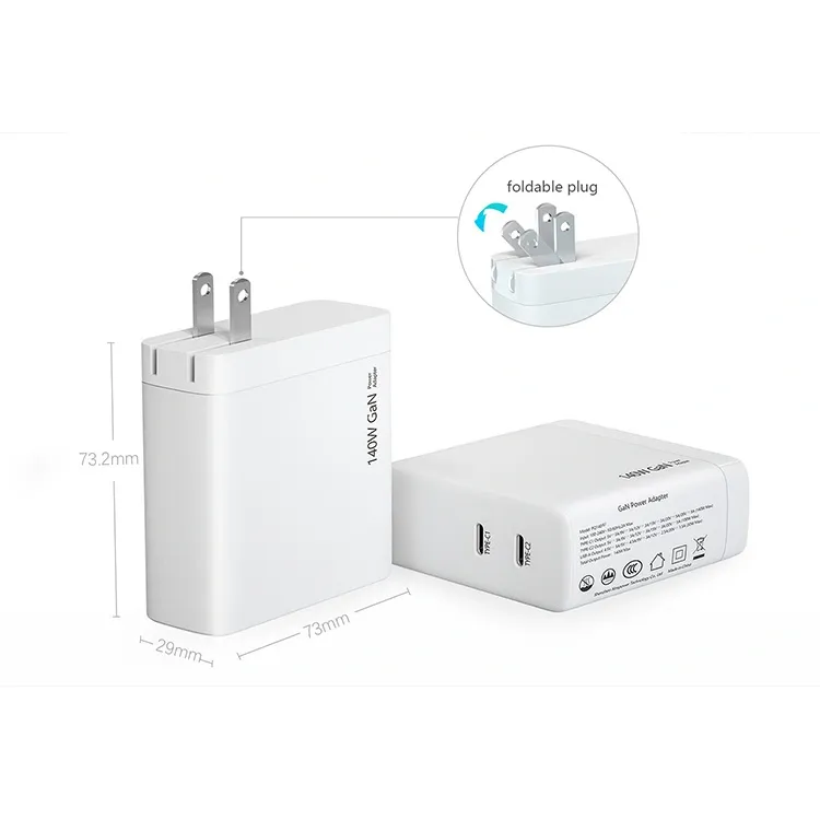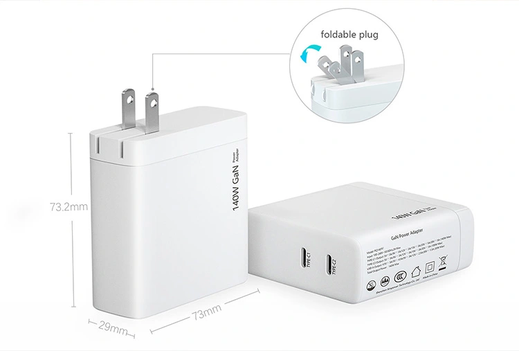 140W 듀얼 USB C 포트 PD 충전기 US 플러그 접이식 사양: