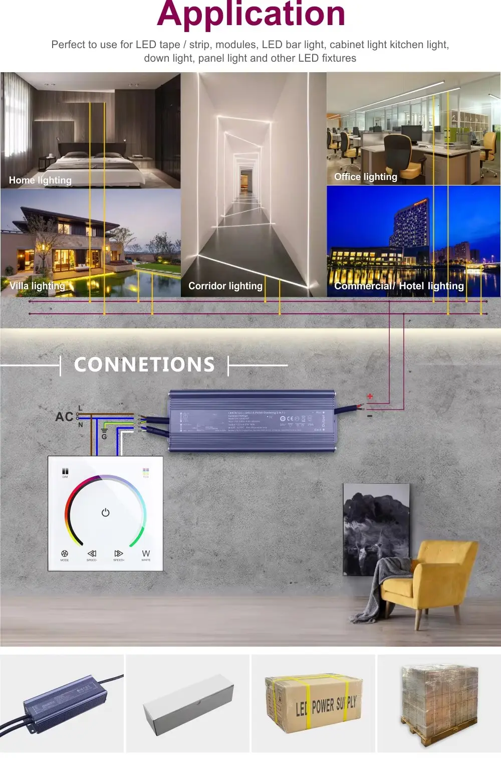 10W ~ 360W 범위에서 사용 가능한 이 정전압 드라이버는 LED 스트립 조명, 모듈 및 선형 고정 장치에 장기간 안정적으로 전력을 공급합니다. 다음을 위한 이상적인 선택입니다: