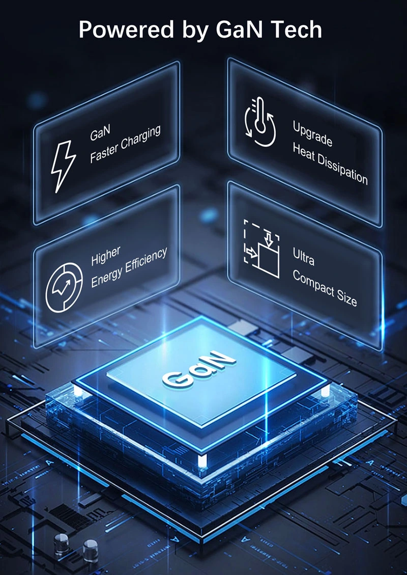 고속 충전: GAN 200W 접이식 고속 충전기는 200와트의 강력한 출력을 자랑하여 기기를 빠르게 충전할 수 있습니다.