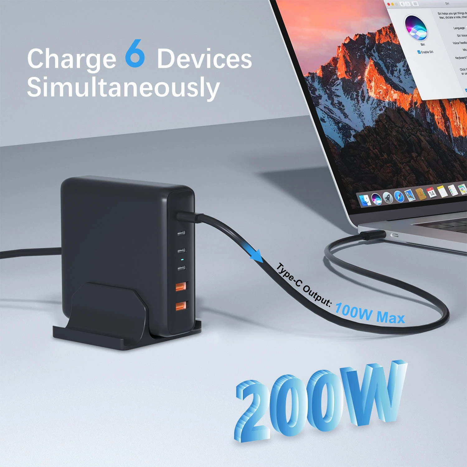 6개의 유형 C 포트가 있는 200W 데스크톱 PD 충전기, GAN 200W 고속 충전기, Shenzhen Starwell Technology Co., Ltd.에서 생산. 중국 제조 강국으로 합리적인 가격에 고품질을 제공합니다.