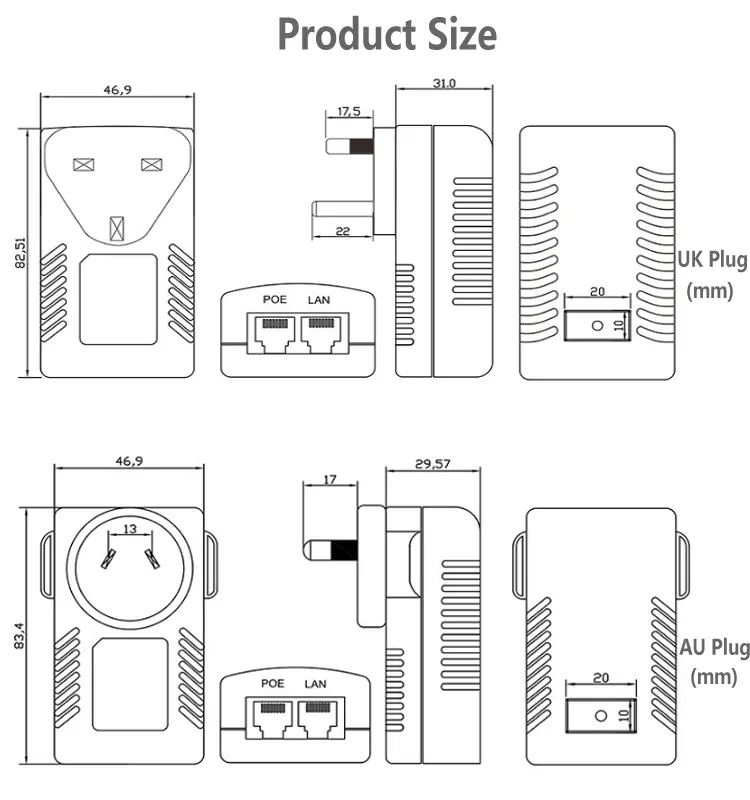컴팩트한 벽면 플러그 구조로 별도의 브래킷이나 배선이 필요 없이 표준 전원 소켓과 직접 사용할 수 있습니다. 이 24V 1A 48V 0.5A POE 인젝터는 공간을 절약하고 케이블 연결을 단순화하므로 가정, 사무실, 상점 및 소규모 감시 시스템에 이상적인 선택입니다.