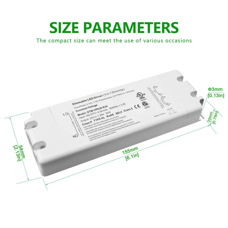 STARWELL 공장의 고급스러운 24V 30W 0-10V 정전압 조광 LED 드라이버는 최대 30W의 최대 출력 전력을 제공할 수 있으며 0~10V에서 원활한 조광 제어를 달성하도록 특별히 설계되었습니다. 리플 계수가 120mVp-p 이하인 안정적인 전압 출력을 제공하여 LED 설비의 깜박임 없는 조명 성능을 보장합니다. 입력 전압 범위가 넓고(100-240V AC, 50/60Hz) 변환 효율이 최대 88%에 달해 에너지 절약 작동이 가능합니다. 또한 글로벌 전압 표준을 준수합니다. 이 0~10V LED 드라이버에는 다양한 보호 기능이 탑재되어 있어 다양한 실내 및 실외 조명 애플리케이션에서 안정적이고 안전하게 사용할 수 있습니다.