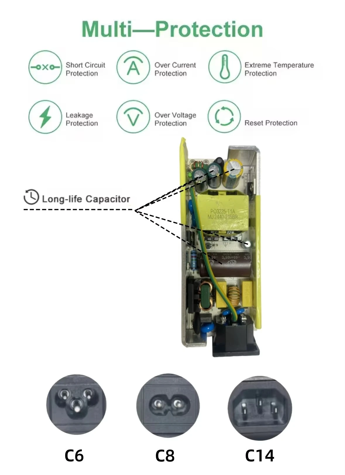 포괄적인 안전 보호: 과전류 보호(OCP), 과전압 보호(OVP) 및 단락 보호(SCP)를 포함한 통합 보호 기능은 어댑터와 귀중한 장비의 손상을 방지합니다.