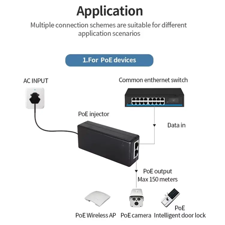 이 24V 1A 기가비트 패시브 POE 인젝터는 다음 분야에서 널리 사용됩니다.