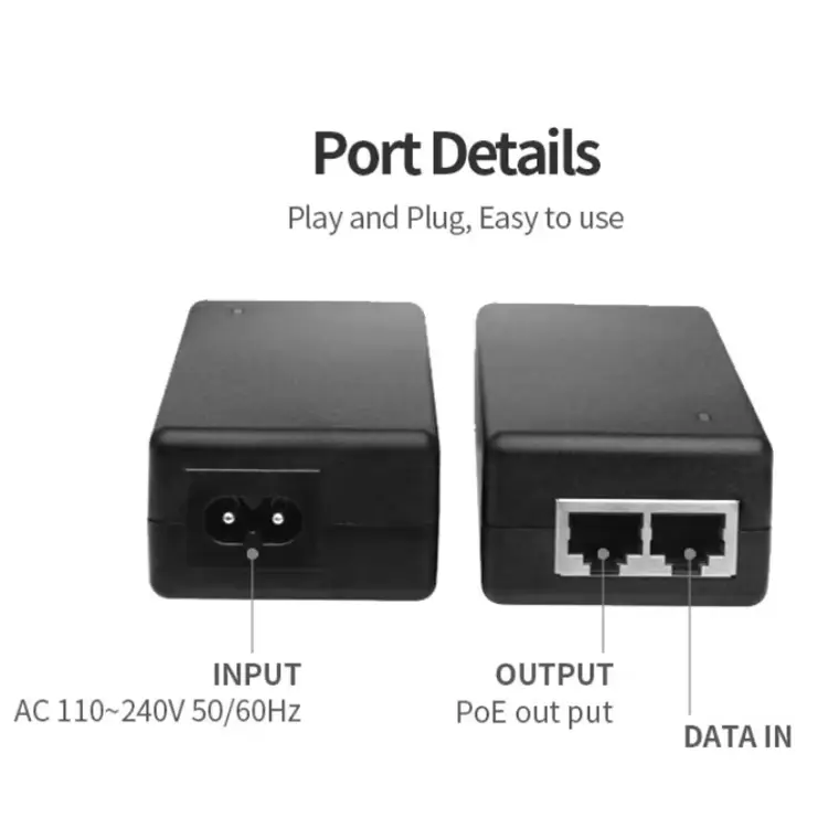 이 패시브 PoE 인젝터는 프로토콜 핸드셰이크 없이 직접 전력 전송을 사용하여 시스템 복잡성을 줄이고 특정 네트워킹 장비와의 호환성을 향상시킵니다.