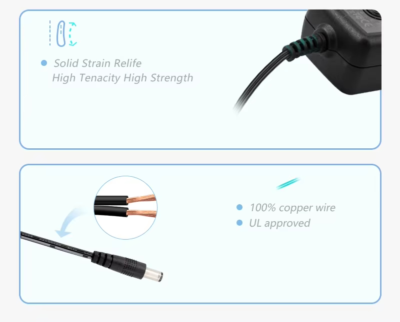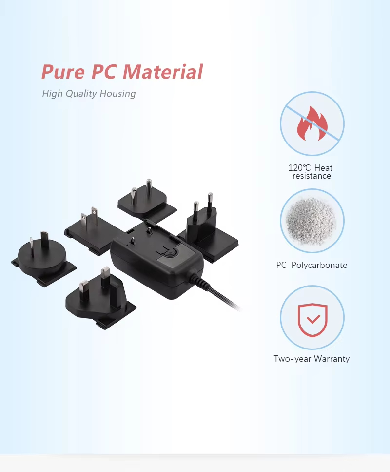 효율적이고 안정적인 전원 공급 장치: 고성능 24W 전원 어댑터로서 고급 스위칭 교환 가능 플러그 전원 공급 장치 기술을 채택하여 효율적인 변환을 달성합니다. 교류를 직류로 안정적으로 변환하여(AC에서 DC로의 교환 가능한 플러그 전원 어댑터) 장치에 지속적이고 순수한 에너지를 제공할 수 있습니다.