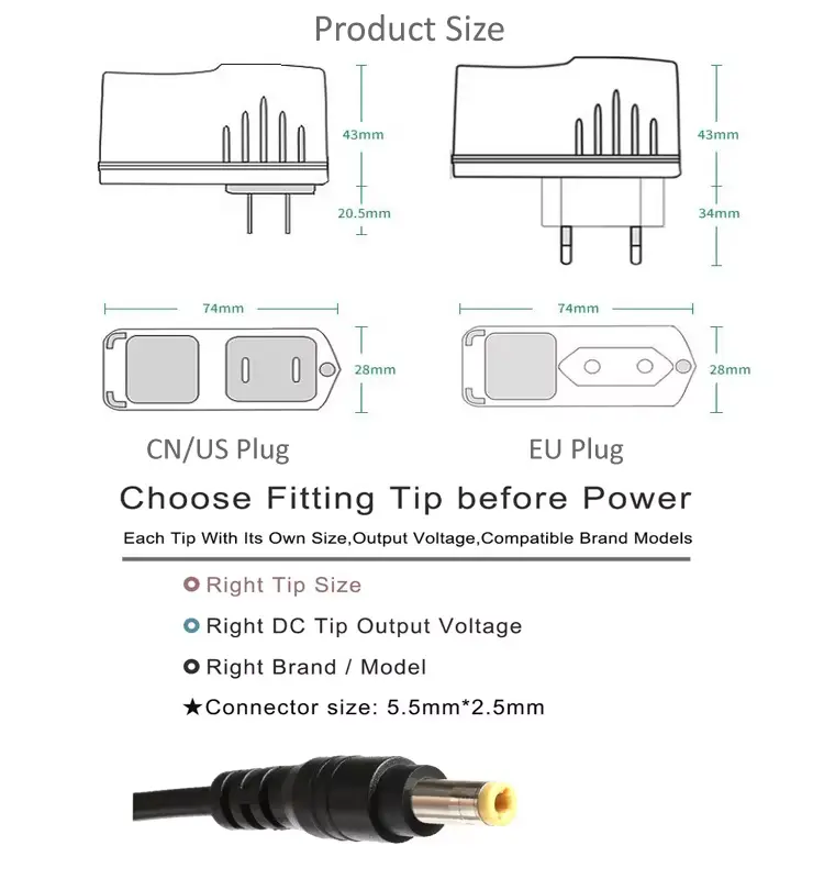 고품질 24W 전원 공급 장치 어댑터는 중국 제조업체인 Starwell에서 제공하며, 이 어댑터에는 미국, 영국, EU 및 AU 플러그와 같은 종류의 플러그가 있습니다.