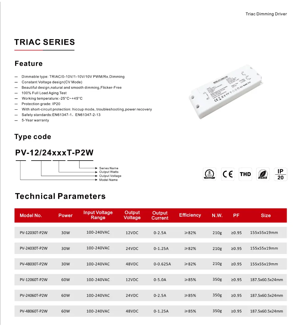 TRIAC 0-10V 디밍 가능 30W 정전압 전원 공급 장치인 Starwell은 장기적인 품질 보증을 위해 5년 보증을 제공합니다. 핵심 구성 요소는 모두 산업 표준에 따라 제작되었으며 뛰어난 서지 저항, 고온 내구성 및 장기적인 작동 신뢰성을 갖추고 있습니다. 듀얼 모드 조광, 정전압 출력, 깜박임 없는 기술 및 긴 수명을 통합한 이 30W 정전압 TRIAC 조광 LED 드라이버는 고품질 조명 효과를 원하는 사용자에게 탁월한 선택입니다. 문의를 환영합니다.