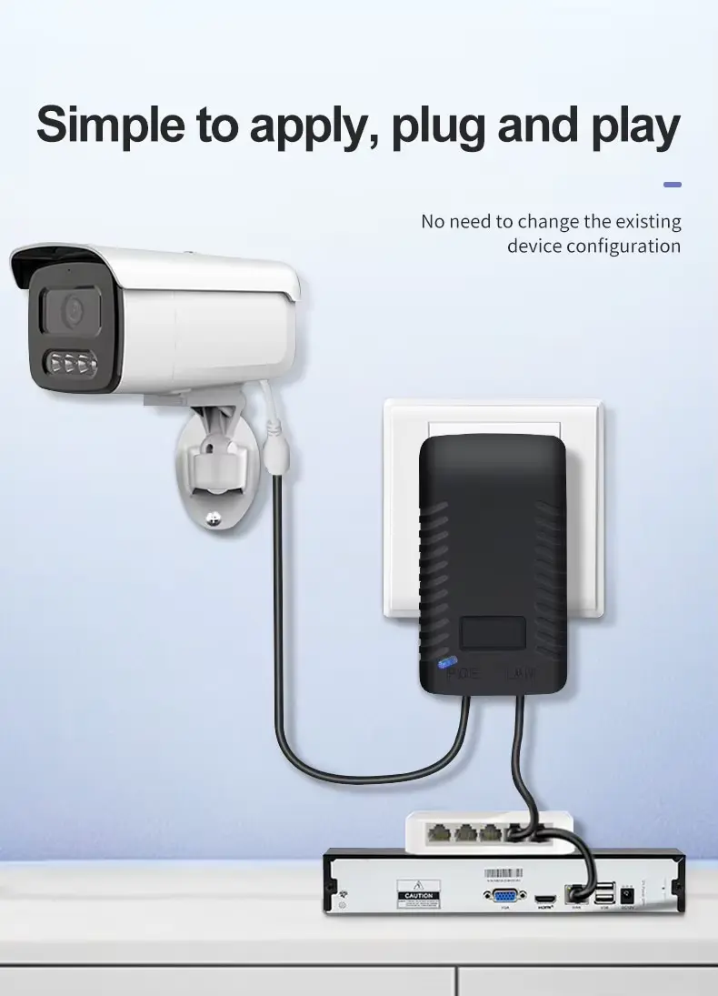 장거리 IP 카메라: 48V PTZ(팬-틸트-줌) 또는 원격 위치에 설치된 불릿 카메라에 전원을 공급하는 데 적합합니다.