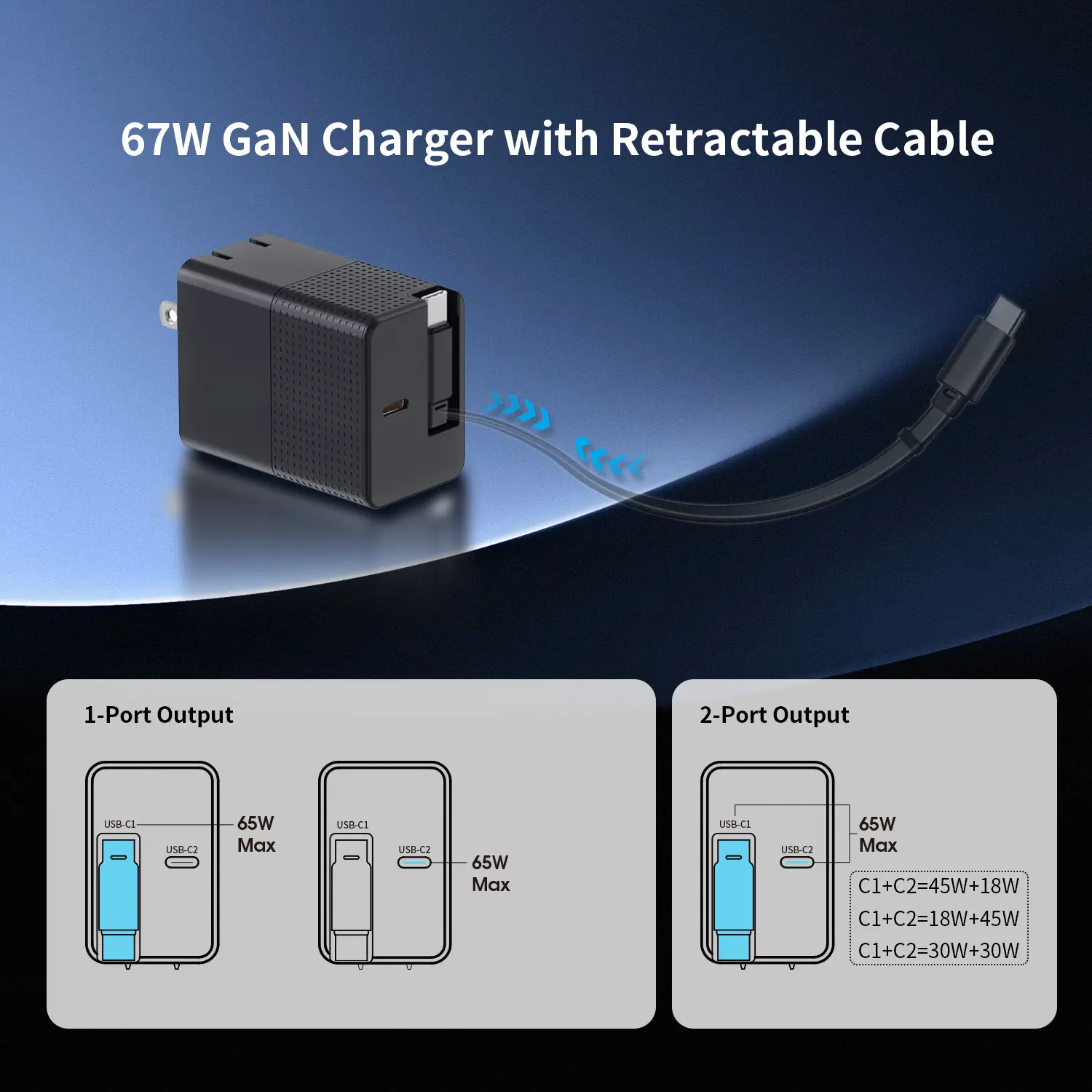 65W 고속 전력 공급: 고급 PD 3.0 기술로 노트북, 태블릿, 스마트폰을 급속 충전하여 단 45분 만에 MacBook Pro를 50%까지 충전합니다.
