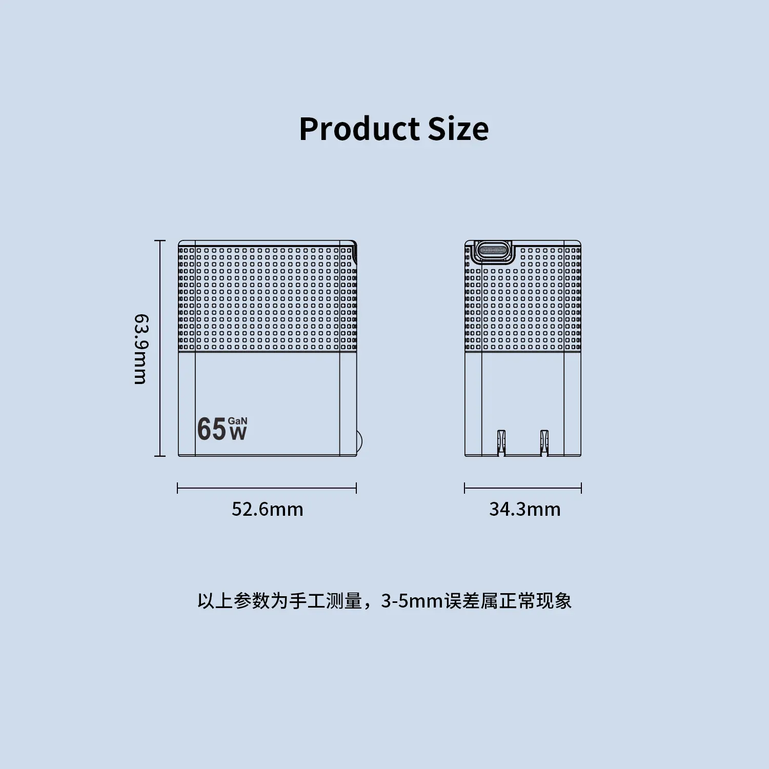 듀얼 USB-C 포트: 65W PD 3.0 충전기는 두 장치를 동시에 충전할 수 있습니다. 두 번의 충전 과정에서 전력은 45W와 20W로 할당됩니다.