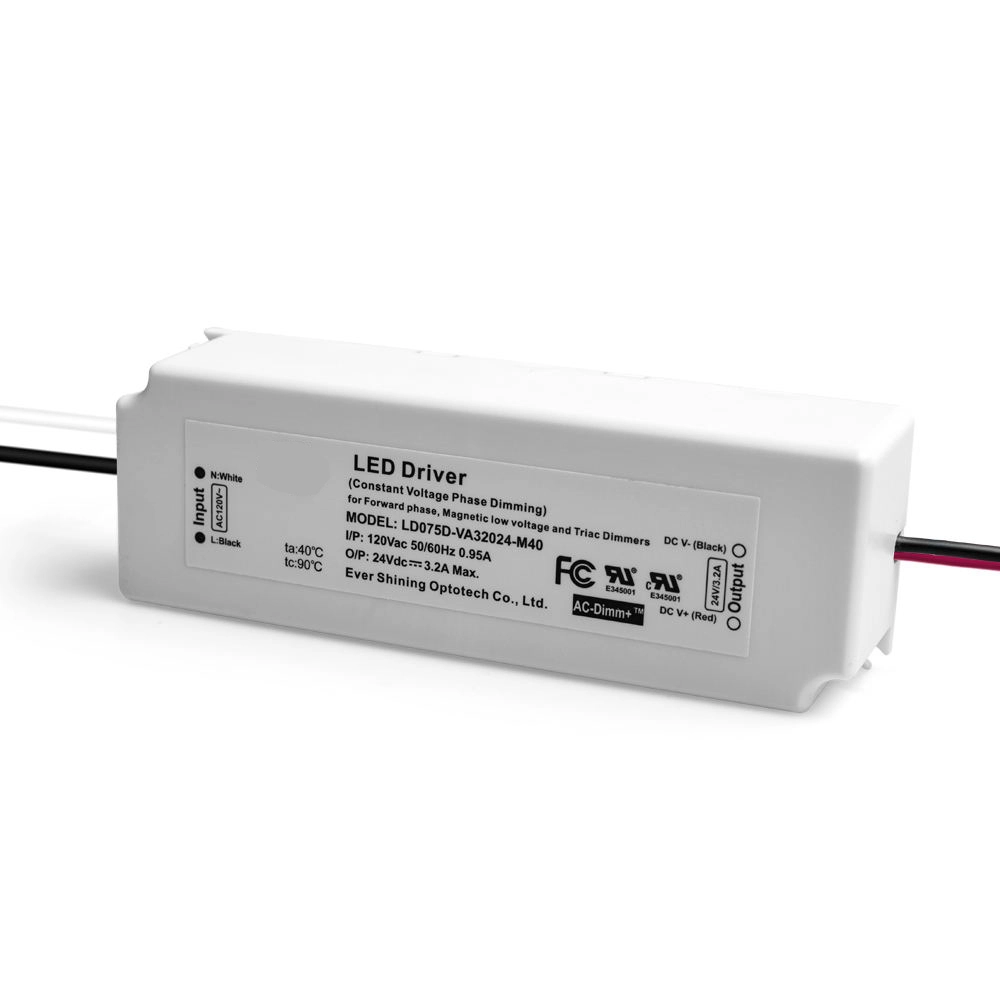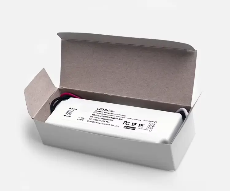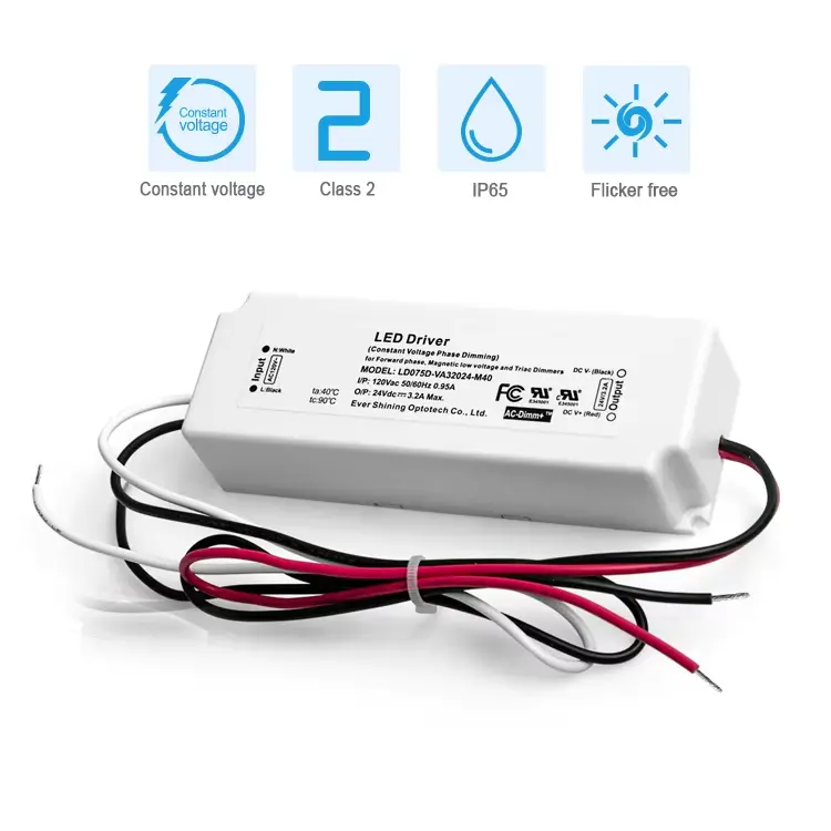 TRIAC 디밍 기능을 갖춘 75W 정전압 LED 드라이버 • 호환성: 대부분의 표준 TRIAC/백열등 스타일 조광기와 함께 작동합니다. • 안정적인 출력: 12V 또는 24V LED 시스템용 정전압(CV). • 부드러운 제어: 전체 범위에서 깜박임 없는 밝기 조절을 활성화합니다. • 강력한 보호: 전기적 결함에 대한 보호 기능이 내장되어 있습니다. • 일반적인 용도: 밝기 조절이 가능한 LED 스트립, 모듈 및 트랙 조명에 적합합니다.