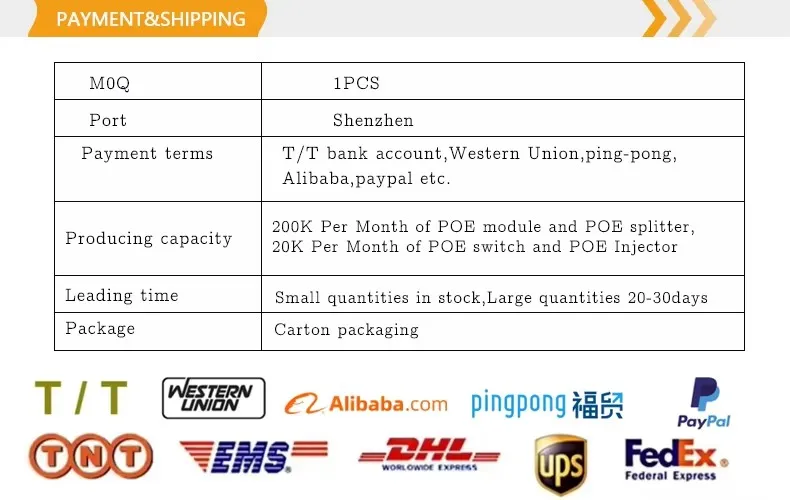 * POE 핀: 1,2+/3,6- 4,5+/7,8- * 비표준 이더넷 터미널 자동 감지 및 보호 * 10/100/1000Base-T LAN 환경 지원 * 쉬운 설치를 위한 고유한 연동 기능