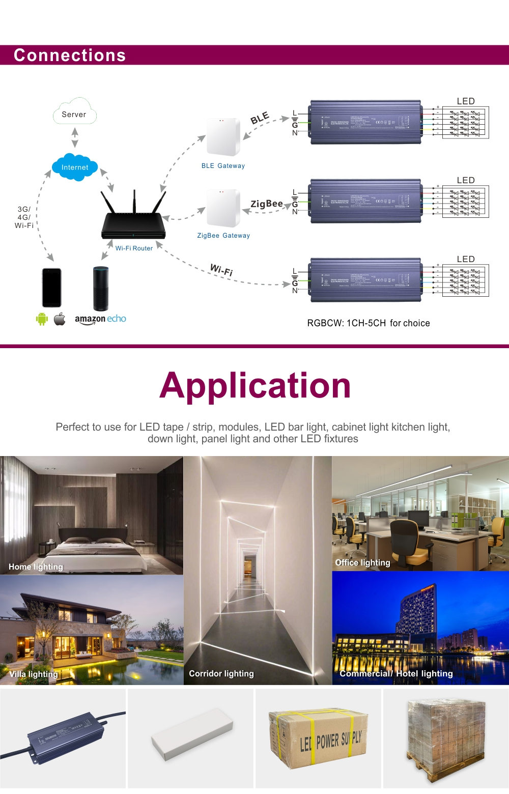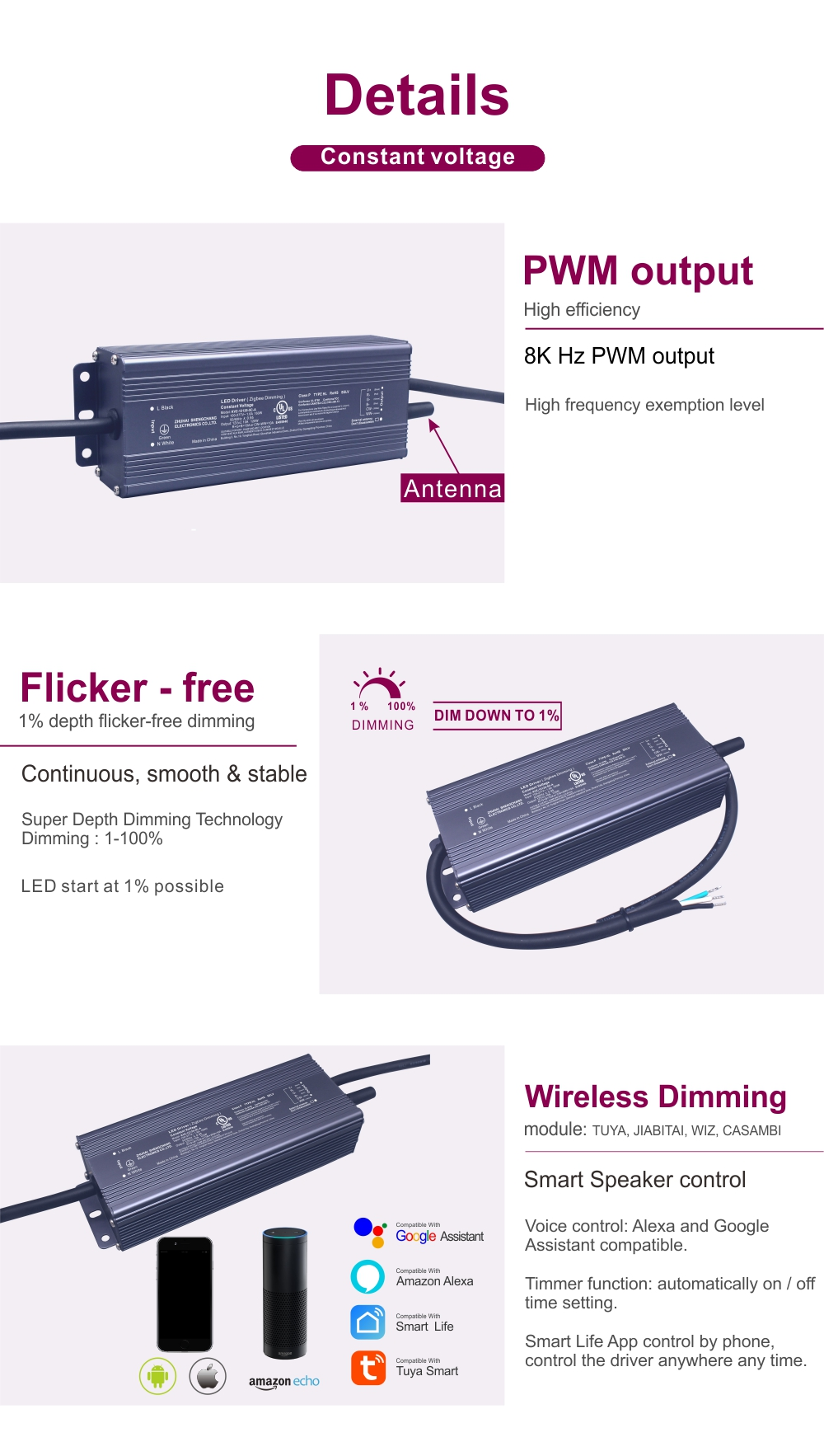 Tuya Smart 에코시스템과 긴밀하게 통합된 이 Tuya Zigbee 무선 조광 정전압 120W LED 드라이버는 원활한 양방향 통신을 위해 최신 Zigbee 3.0 통신 프로토콜을 활용합니다.